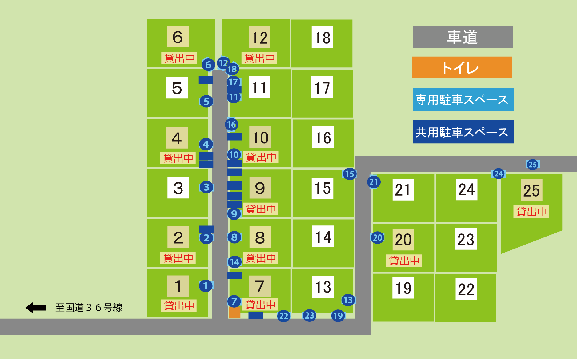 1区画あたりの面積が広いため隣接区画の人も気になりません。